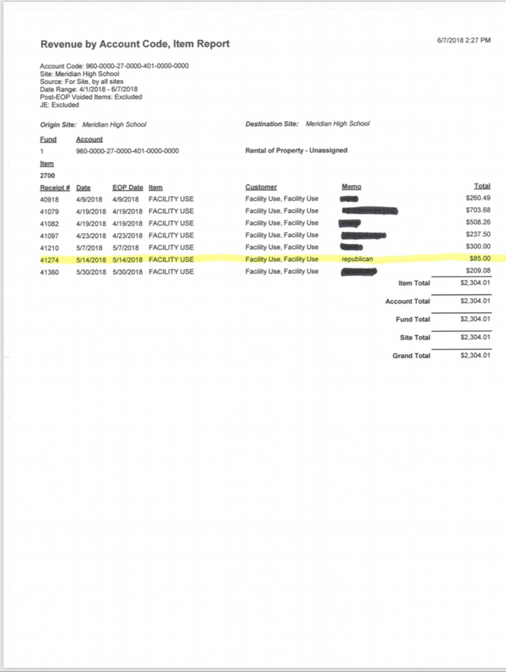 revenue by account code meridian republican